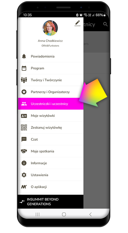 W menu po lewej stronie znajdziesz pozycję „Uczestniczki i uczestnicy” – przeglądaj listę i znajdź swoich starych i nowych znajomych 😊