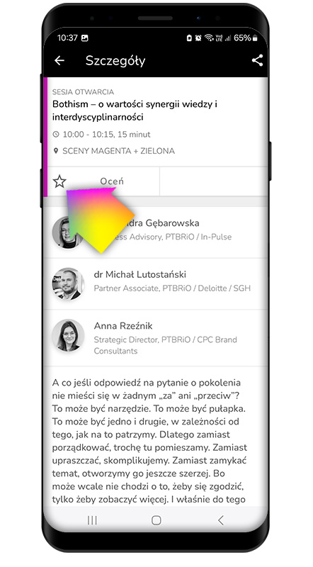 W trakcie trwającego wystąpienia wejdź w jego opis w aplikacji i skorzystaj z możliwości oceny